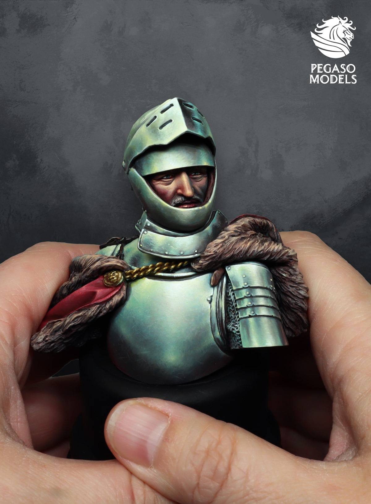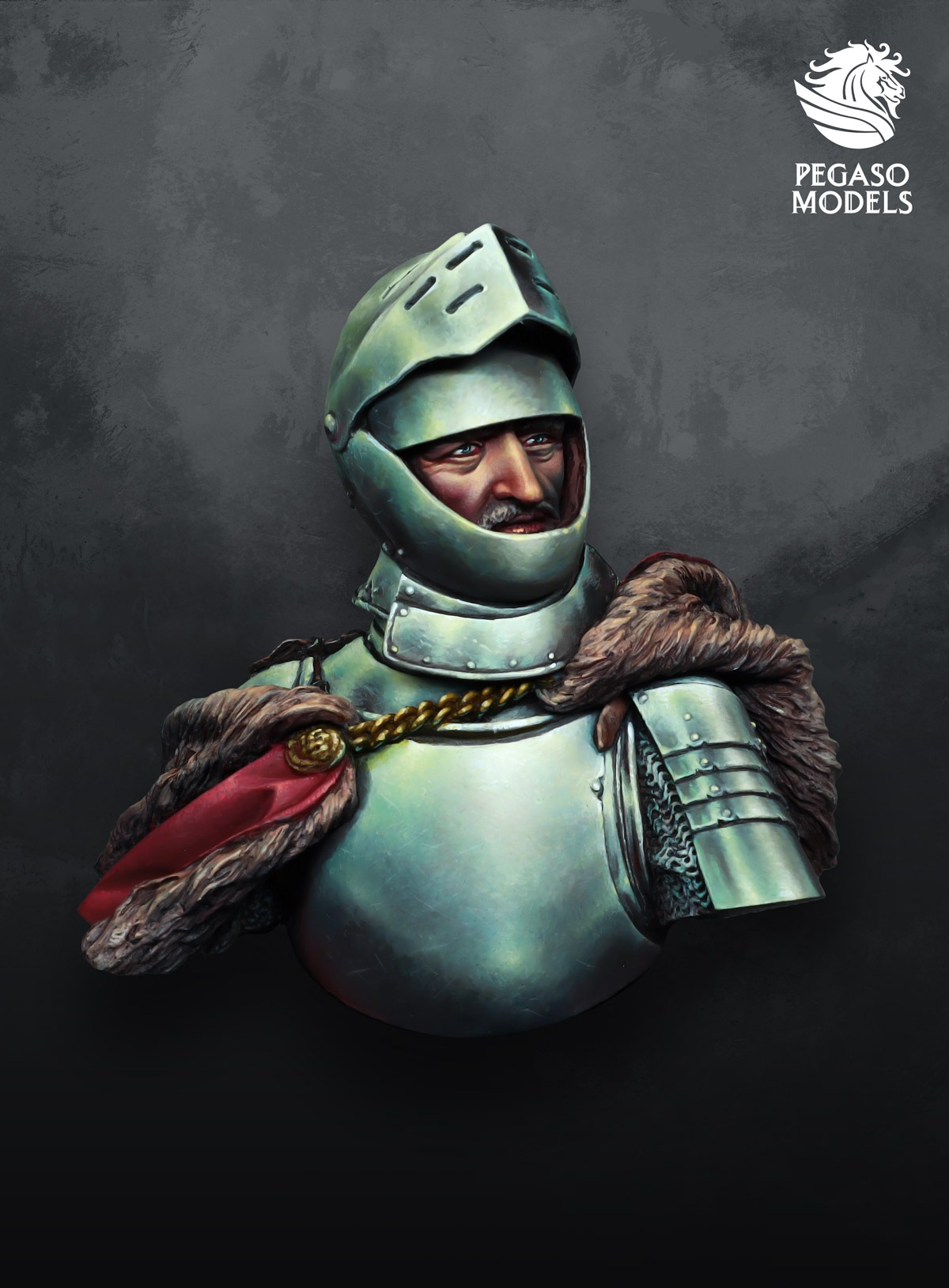 Whether you are preparing for a competition piece or building a reference portfolio for future projects, this model slots naturally into any collection focused on European armour of the later Middle Ages. Pair it with other Pegaso historical busts and figures on the main store at https://www.pegasoworld.com for a consistent display line. For more inspiration on colour, light and advanced NMM steel, you can follow Pegaso Models on Instagram at https://www.instagram.com/pegasomodels/ and on Facebook at https://www.facebook.com/pegasomodels/. Video content from the Kimera Models and Kimera Kolors YouTube channel at https://www.youtube.com/@kimeramodels offers additional guidance on controlling contrast, edge definition and volumes when painting reflective armour. This medieval knight bust works as a step by step study piece for workshops and coaching. Experienced painters can use the medieval knight bust to push contrast, colour temperature and texture
