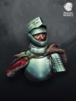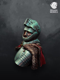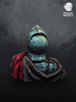 Designed as a pure painting study, this resin bust captures a disciplined medieval knight encased in full plate armour, with broad steel surfaces ideal for exploring subtle light and reflection. The helmet, bevor and rounded breastplate, giving historical flavour without tying the piece to a single named commander. Deep folds in the fur lined mantle and the small splash of rich cloth over the shoulder add contrasting textures that help frame the cool armour tones on the chest and pauldron.