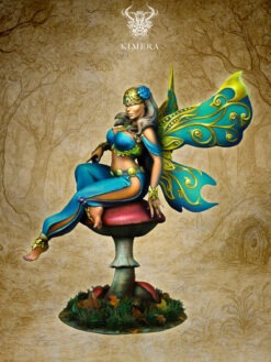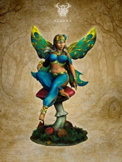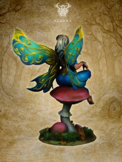 This fairy miniature presents Verbene seated gracefully atop an oversized woodland mushroom, a sculptural choice that reinforces the magical ecosystem surrounding the Academy. The flowing movement of her pose contrasts with the organic stillness of the base, creating a sense of balance and harmony. Her wings sweep widely behind her, structured with layered details and ornate surface patterns that give painters space to experiment with atmosphere and visual narrative. As with all characters in the Wood Whisperers line, the boxart represents only one possible interpretation, inviting painters to express their own vision.